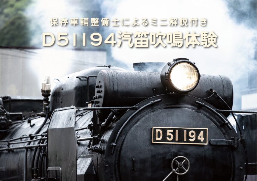 2026年5月3日(日)は津和野駅前展示D51194号機の汽笛を町内中に響かせられる貴重な機会!