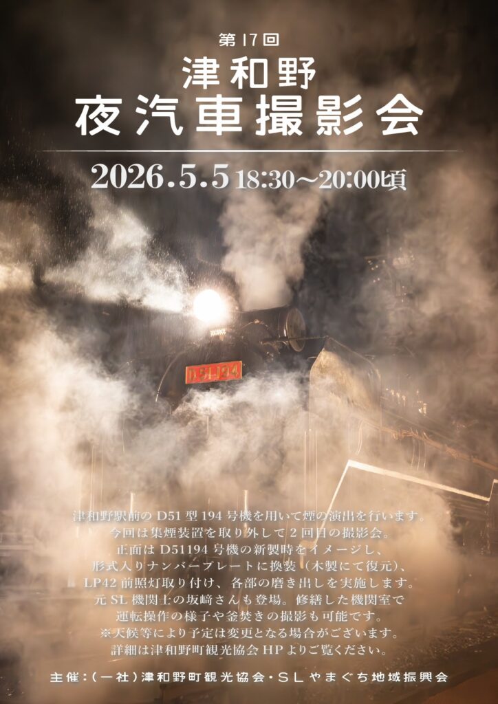 集煙装置を外して実施する2回目の夜汽車撮影会!ライトアップを実施し煙の演出を行います。