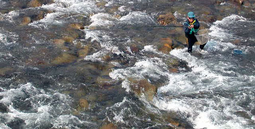 『ダムがないから川底が根こそぎ洗われて、泥臭くない鮎が捕れる』と地元漁師の談。
