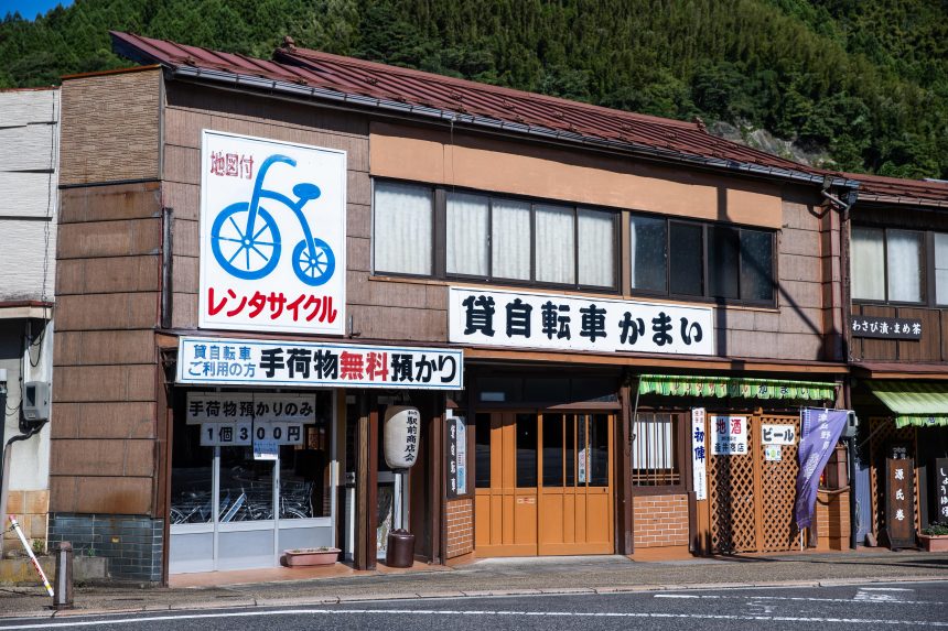 津和野駅出てすぐ、津和野のお土産品や津和野を観光するのに最適なレンタサイクル