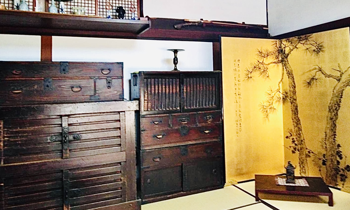 唯一大火の難を逃れた中蔵に収納されていた茶道具、調度品等を季節に合わせて設えております。四季折々に表情を変える中庭と共に歴史が醸し出す町屋文化の一つである煎茶を飲みながら、ゆったりとしたひと時をお楽しみくださいませ。