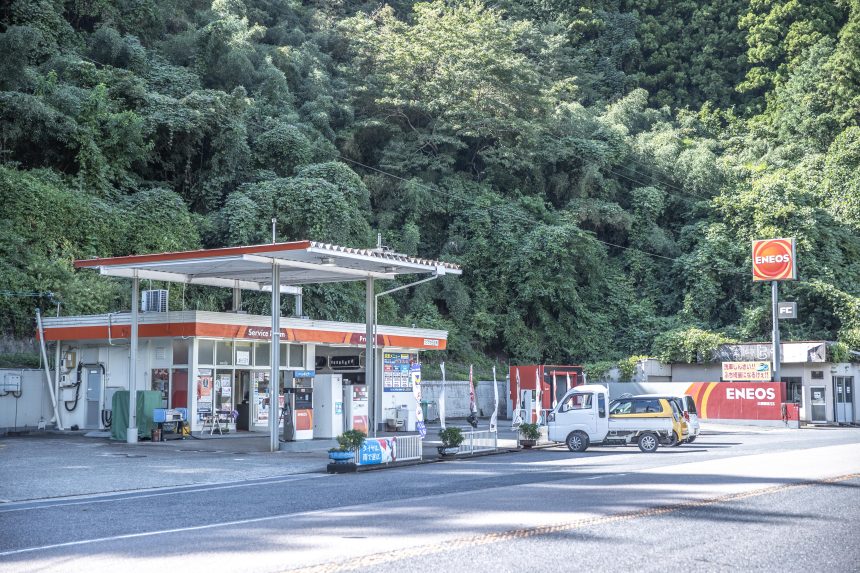 日原駅近く、国道9号線沿いにあるガソリンスタンド
