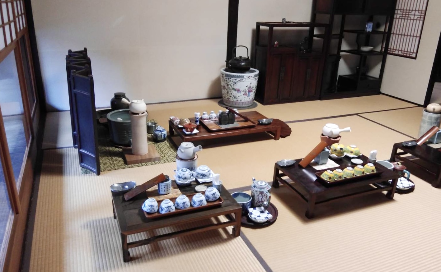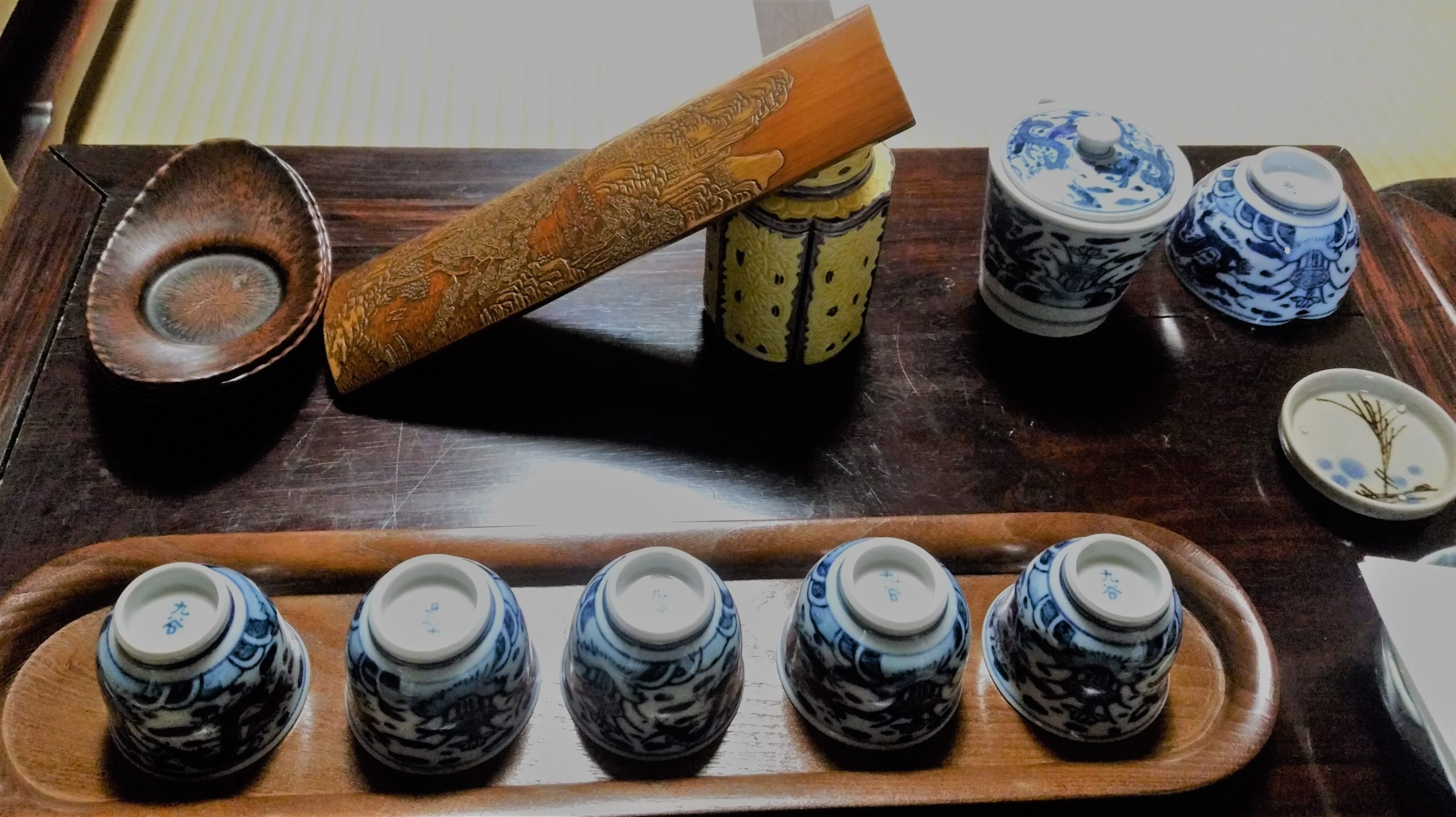 当家が代々受け継いでいる煎茶道具をご使用して頂き、ご自身で淹れた煎茶を飲んでみる体験です。煎茶道具の取り扱い、煎茶をおいしく淹れる方法や、一般的な飲み方を説明致します。また床の間の掛け軸をはじめ、季節に応じた調度品等、煎茶とその空間が醸し出す非日常な時間をごゆっくり楽しんでいただけます。
