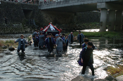 地元では「天神さん」と親しまれ、水の神様という所以から、大橋の下を担ぎ手が全身ずぶぬれとなり、津和野川を横断することも。