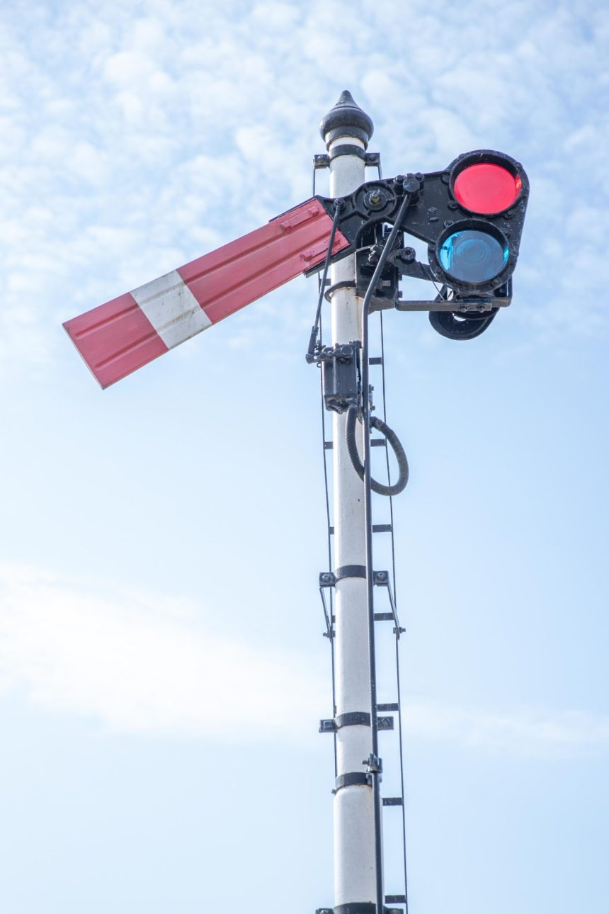 津和野駅前のポケットパークにはかつて津和野駅で使われていた腕木式信号機が保存されています。