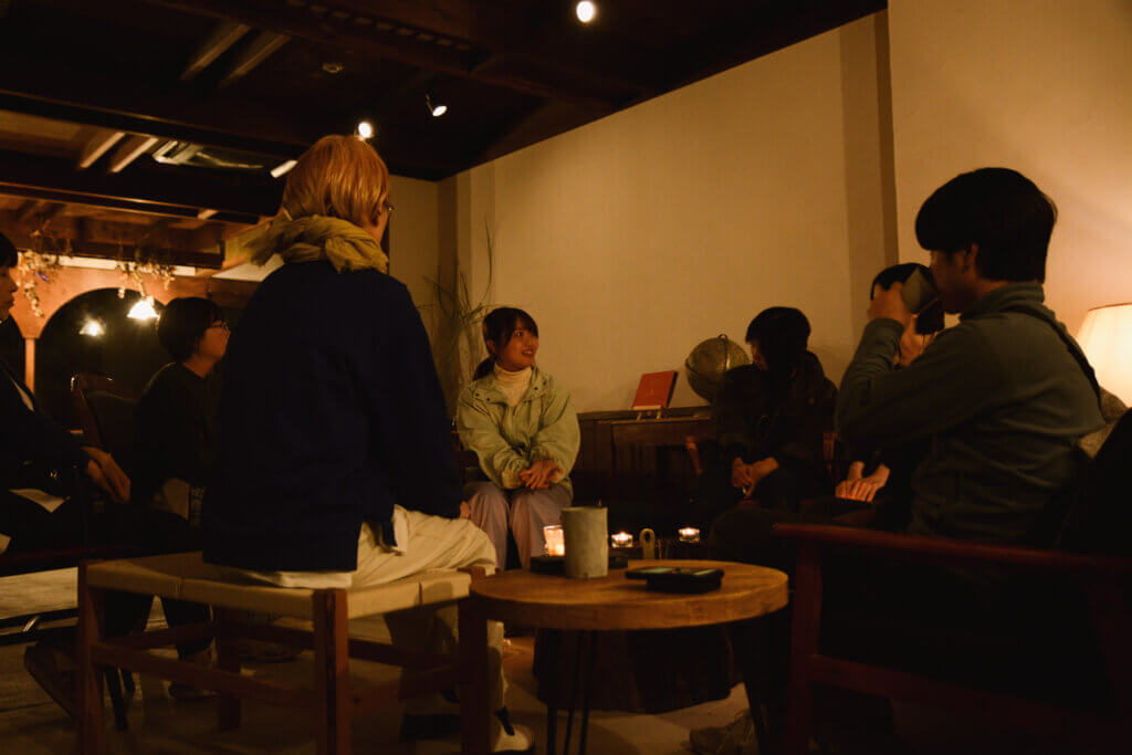 明かりを落とし キャンドルを灯し 火鉢を囲んで津和野のことを語り合う夜のひと時